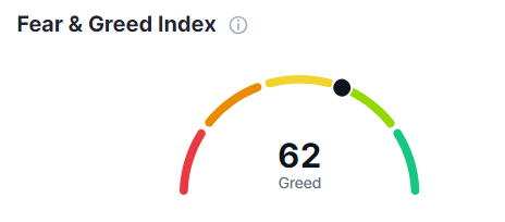 현재 지수는 62로, 이는 투자자들이 비교적 탐욕적인 상태에 있음을 나타냅니다.