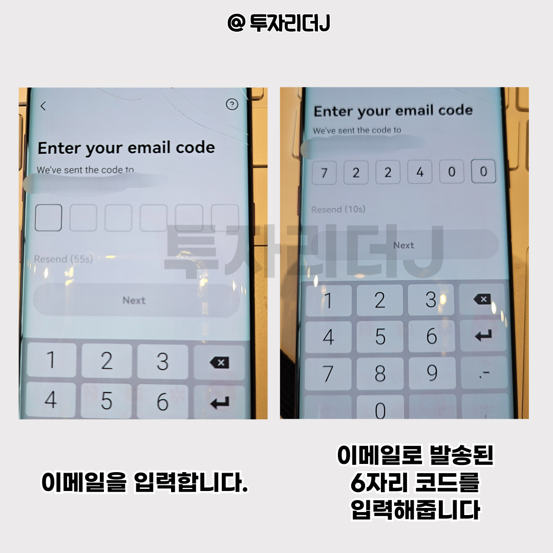 이메일주소를 입력 후 발송된 6자리 확인 코드를 입력해줍니다.