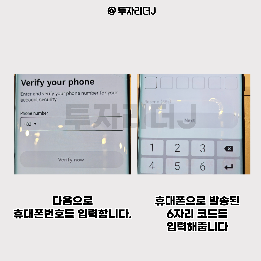 그 후 마찬가지로 휴대폰번호를 입력 후 휴대폰으로 발송된 6자리 코드를 입력해줍니다.